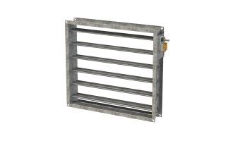 Motorised Dampers are most often electrical, but can also be pneumatic. Electrical motors are available with a range of features to tailor the specific use of a Damper. Modulation as an example can allow control of positions between open and closed going beyond a simple shut off or isolation and enables precise control of the flow rate. Motorised Dampers can also be automated to be controlled by thermostats as part of a larger HVAC system. Spring Return Dampers can be used to ensure the blades return to a fail position in an instance of loss of power, or hydraulic pressure.